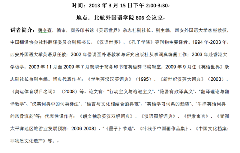 现实难以承受之忠实--《英语世界》杂志社副社长魏令查教授学术讲座通知
