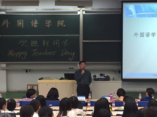 2015年9月10日上午10:00,北京欧美大片ppt免费大全外国语学院2015级研究生新生开学典礼在主M楼102举行。外国语学院院长向明友老师、党委书记钟玲老师,副院长苏衡、钱多秀、董敏老师,党委副书记刘娜老师,以及各位博士生导师、硕士生导师出席了典礼。开学典礼由邬丽老师主持。