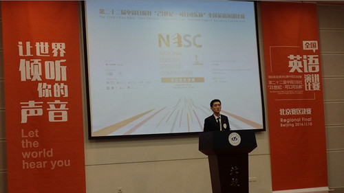 本次中国日报社“21世纪•可口可乐杯”全国英语演讲比赛北京决赛由北航英语精英班具体组织承办,2015级精英班学生李思颖和冯鑫程担任主持人,精英班外教Dillon担任提问嘉宾,外国语学院教师胥国红、王泉为指导教师。