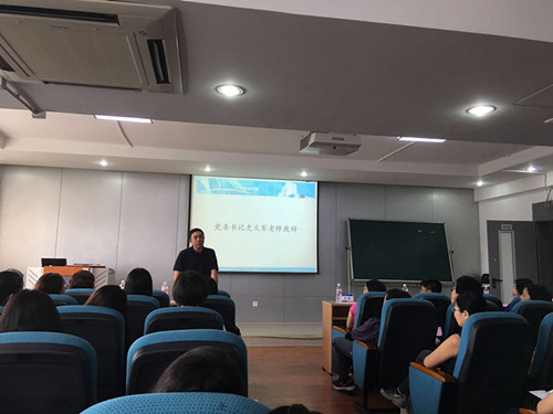 外国语学院党委书记史文军老师为大家带了了亲切、随和的致辞。史书记热情地欢迎大家来北航读书,并亲切地介绍了北航外院的一些基本情况。史书记关心大家的学习以及生活,并希望同学们怀揣理想,在未来的生活中做一个品德兼优的人。史书记的平易近人以及谆谆教诲引来了大家的阵阵掌声