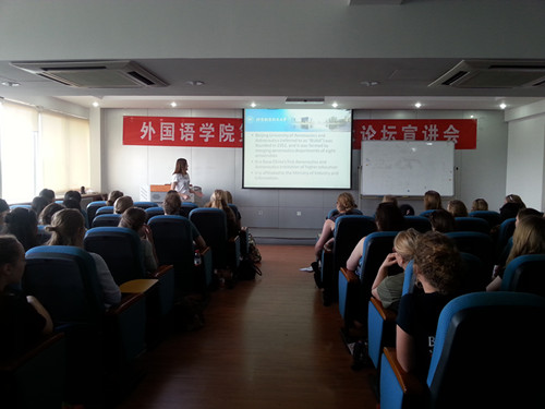 所促进的多元文化交流”。 活动一开始,外国语学院代表蔺宛琪同学以幽默、流利的英语简略介绍了我校的整体情况以及优势特点,以及北航外国语学院的特色。接下来,奈梅亨大学学生代表介绍了奈梅亨大学的悠久历史以及该校的专业设置及学生会的详细情况。两位代表的介绍极大的促进了双方学生对其大学的了解。此次交流活动以小组讨论形式为主,全场共分为
