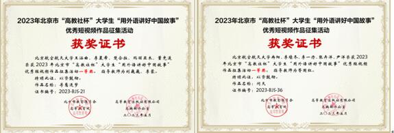 由北京市教育委员会高等教育处联合高等教育出版社、北京市高教学会大学英语研究分会和北京市高校外语课程思政联盟举办的“‘用外语讲好中国故事’优秀短视频作品征集活动”近日圆满落幕。经过校级、市级的多轮选拔,我校外国语学院两支学生代表队:王涵曲团队及冉阳团队双双斩获北京市一等奖。